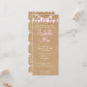 BEBÊ BUNTING BAPTISM CHRISTENING INVITATION. Este batismo bonito, rústico, batizando ou primeiro convite de comunhão apresenta um fundo no estilo papel kraft, bunting rosa e branco, e uma bela caligrafia de script com uma sombra rosa. O reverso apresenta linhas de revestimento cor-de-rosa e branco sobre um fundo no estilo do papel kraft. Projetado por Piglet © Pura em www.zazzle.com/purepiglet*.