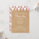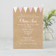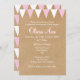 BEBÊ BUNTING BAPTISM CHRISTENING INVITATION. Este batismo bonito, rústico, batizando ou primeiro convite de comunhão apresenta um fundo no estilo kraft-paper, bunting rosa e branco, e uma bela caligrafia de script com sombra rosa-queda. O reverso apresenta linhas de revestimento cor-de-rosa e branco sobre um fundo no estilo do papel kraft. Projetado por Piglet © Pura em www.zazzle.com/purepiglet*.