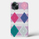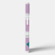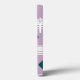 Esta capa de telefone tem um design de ouros Bauhaus em tiras roxas com um design para parecer como colcha.