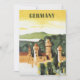 Ilustração antiga de pôster de viagem europeu da Alemanha com um castelo bávaro no campo alemão com montanhas e floresta verde na paisagem.