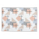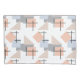 Esta fronha tem um design de Bauhaus repetindo retângulos, quadrados, diamantes e triângulos em cores de praia de bronzeado, cinza, azul e laranja.
