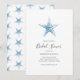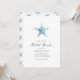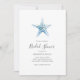 Wondering "where to buy customizable beach bridal shower invitations online" Celebrate the bride-to-be with these invites designed with a simple hand painted watercolor starfish in shades of blue. Set against a crisp white background, the design highlights her name in elegant script with event details in a classic charcoal serif font. The back features a starfish patter bold, island-inspired look.