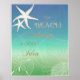 Peixe-starda venenoso, uma bússola marinheira, dólar de areia, e as palavras "a Praia é sempre uma boa Ideia" em tom marrom esboçado em branco são colocados contra um fundo de azul profundo, aqua e verde com peixe-starfish branco esmaecido para fazer um mar adorável e calmante e praia um pedaço de arte temido.