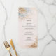 Elegant beach wedding menu template featuring soft ocean waves, palm details, and warm golden accents. Perfect for coastal, tropical, and destination weddings. Designed in a modern 4 × 9.25 format with a matching back design for a beautiful seaside reception setup.