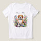 Uma camiseta personalizada doce com um Beagle em aquarela que está em pé entre flores com brinquedos de cachorro. No verso, há um poema doce sobre Beagles. A camiseta diz "Mãe de Beagle", mas você pode editar para dizer o que quiser na área de personalização.