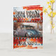 Cartão de aniversário com um cão de boxe a conduzir um design Beatle