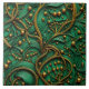 Add an artistic touch to your walls with this tile, which features a green and gold artistic floral-inspired abstract pattern.