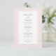 Um belo e clássico menu Casamento de Estilo de Deco de Arte. Limpo e simples, mas ainda com estilo adicionado - um fundo cor-de-rosa pincelado e pastel, com uma camada sutil de padrão de diamante branco. O rosa é ativado com bordas de cinza e texto. O olhar geral tem uma sensação elegante de vintage enquanto ainda é moderno.