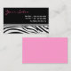 Modelo de cartão de negócios de salão de beleza em um padrão de tendências e na moda de zebra em fundo criado para salão de cabelo, salão de unhas, cômoda de cabelo ou salão de beleza.