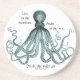 Porta copos litoral: A porta copos caracteriza uma gravura do vintage de um polvo e uma cotação viva litoral de inspiração do poeta Ralph Waldo Emerson que lê: "Viva na luz do sol, nadam no mar, bebem o ar selvagem."