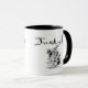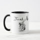 Beba-me caneca que caracteriza a ilustração original do coelho branco das aventuras de Alice no país das maravilhas, tirada por John Tenniel.