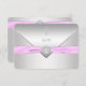 Fita de cetim rosa elegante com centro de diamante, pérola branca, bebezinha dobrada, parece batizante e convite para batismo, RSVP. Adicione seus detalhes à frente e atrás simplesmente adicionando seus detalhes de evento, estilo de fonte, tamanho de fonte e cor e texto. Observe que todos os designs de convite que você encontrará no Zazzle são gráficos impressos em estoque de papel plano sem joias reais, arcos, levantados, gravados em relevo ou peças ou peças adicionadas.