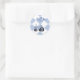 Autocolantes ou selos de envelopes que combinam os anúncios do criança e os convites para chás com o trator azul giro com design de balões, dizendo "É um menino!" Os balões também têm designs de um alfinete de segurança fralda, garrafa de bebê e chocalho. Criado por KLeighE das Ilustrações de Harmonia do Hinterland por KLeighE