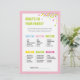 O jogo "O que há na sua bolsa" é uma atividade divertida para qualquer Chá de fraldas. Este cartão vem num esquema cor rosa, com um confete colorido. A adição perfeita a um Chá de fraldas ou a festa do Bebê Sprinkle! Encontre outros jogos e itens correspondentes em www.zazzle.com/mypartydesign