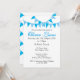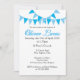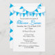 BEBÊ BUNTING BLUE BAPTISM CHRISTENING INVITATION. Este batismo bonito, batizar ou primeiro convite de comunhão apresenta bunting azul e branco, e belíssima caligrafia com sombra azul. O inverso apresenta linhas de fundo azul e branco de bunting. Projetado por Piglet © Pura em www.zazzle.com/purepiglet*.