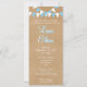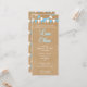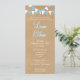 BEBÊ BUNTING BLUE BAPTISM CHRISTENING INVITATION. Este batismo bonito, rústico, batizando ou primeiro convite de comunhão apresenta um fundo no estilo kraft-paper, bunting azul e branco, e uma bela caligrafia de script com sombra azul. O reverso apresenta linhas de revestimento azul e branco em um fundo no estilo do papel kraft. Projetado por Piglet © Pura em www.zazzle.com/purepiglet*.