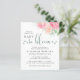Este bonito convite para chás de fraldas, amigável do ponto de vista orçamental e neutro do ponto de vista do gênero, apresenta os impressionistas florais de cor d'água em rosa e coral e o "Baby in Bloom" escrito em uma mistura de simples tipografia e um roteiro verde de na moda com flores e pinceladas.