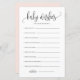 Peça aos hóspedes que deixem o conselho e desejos de bem-estar para o bebê com o cartão elegante de bem-estar do bebê. Ele apresenta uma escrita branca preta, tipografia clássica, fundo rosa-claro. Você pode personalizar a parte frontal e traseira desta placa de chá de fraldas. Este cartão de desejos de chá de fraldas é perfeito para qualquer tema e estação de chá de fraldas.