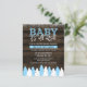 Orçamento de inverno russo para os convites para bebês. Esta moda design apresenta uma floresta de neve com árvores em branco e azul claro sobre um fundo de madeira escura. Um toque moderno é adicionado com a fonte divertida do roteiro dizendo "Querida, está frio lá fora."
