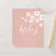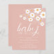 Você está planejando um chá de fraldas de menina? Este belo convite orçamental é decorado com margaridas desenhadas à mão num fundo cor-de-rosa. Diz "Baby in Bloom" na tipografia da na moda. Facilmente personalizável. Desenho original © Michele Davies.