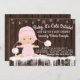 Meninas, bebê, está frio fora do chá de fraldas convite com uma adorável menina vestindo um chapéu de neve rosa giro em madeira rústica e fundo de neve. Esses bonitos convites para chuveiros de bebês em flocos de neve rosa são facilmente personalizados para seu evento simplesmente adicionando seus detalhes.