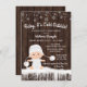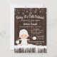Querida, está frio fora do chá de fraldas com um bebê adorável vestindo uma roupa branca de neve com chapéu numa madeira rústica e fundo de neve. Estes bonitos convites para o chá de bebê com floco de neve de inverno são facilmente personalizados para o seu evento simplesmente adicionando os seus detalhes. Este design funciona bem para um floco de neve ou gênero de inverno revela convite.