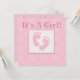 Pés-bebê cor-de-rosa, chá de fraldas convite para aquele recém-nascido especial. Design tem um par de pés cor-de-rosa para bebês e as palavras "é uma garota". Personalize com os detalhes do seu partido.