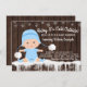 Querida, está frio fora do chá de fraldas convite com um bebê adorável vestindo um chapéu azul de neve bebê em uma madeira rústica e fundo de neve. Esses garotos bonitos de inverno, os convites para chuveiros de bebês em flocos de neve são facilmente personalizados para seu evento simplesmente adicionando seus detalhes.