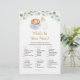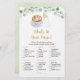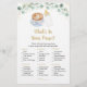 Estes elegantes "What's In Your Purse Cards" são uma forma excelente de se divertir com o seu Chá de fraldas e é garantido ser um grande sucesso! Simplesmente passá-los durante o Chá de fraldas, onde os convidados se divertirão a passar pelas suas bolsas e a verificar os itens que têm na lista. A pessoa com mais pontos ganha! Este adorável design apresenta uma aquarela verde com café, uma garrafa de bebê e um sotaque de folha de ouro.