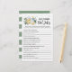 Adquira este cartão editável e desfrute de um jogo Piada Pai de Chá de fraldas verde de alta qualidade para o seu evento! Chá de fraldas, Atividades de Revolução de Gênero! Sage Green Brewery Unisex design RESPOSTAS: 1.Sneakers 2.A pork chop 3.Eles têm muitos fãs 4.Na madrugada 5.Num banco de neve 6.Porque é o centro 7.Nacho Cheese 8.Pear-is 9.Ninguém sabe 10.Minnesota 11.Porque eles vivem nas escolas 12.Leite mimado 13.Todos eles 14.Azul claro 15 Quando se torna aparente