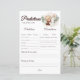 O cartão verde de previsão de chá de fraldas, com tema café, "Baby is Brewing" apresenta um design divertido e interativo para os hóspedes fazerem previsões sobre o futuro do bebê. Com uma charmosa garrafa de bebê e uma xícara de café cercada por folhas verdes, esta carta gravatas no tema acolhedor e inspirado no café do evento. Os hóspedes podem preencher previsões como data de nascimento, peso e traços de personalidade, fazer-o como uma lembrança memorável para os futuros pais. É uma forma moderada e criativa de engajar hóspedes enquanto adiciona um toque pessoal à celebração.