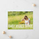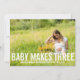 Este design apresenta um campo de texto personalizável, com as palavras "baby faz três" em uma fonte branca e em negrito