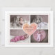 Anúncio de nascimento de colagem de fotos moderno para garota ou garoto. Basta usar esta modelo para adicionar suas próprias fotos personalizadas na frente e no verso do cartão; e personalizar com o nome do bebê e as estatísticas de natalidade na elegante tipografia de tendências no meio do pequeno coração rosa.