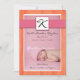 Anúncio de Nascimento de Menina Personalizável em Monograma Elegante com Fotografia. Os pais orgulhosos adorarão este anúncio de nascimento luxuoso para anunciar o nascimento da sua princesa bebê. Selecione "personalizar" para abrir o menu de edição. Substitua todo o texto da amostra por seu e substitua a foto da amostra pela da sua bebê recém-nascida. Esta foto de amostra não deve ser impressa e deve ser usada apenas como exemplo. Design por Elke Clarke Design ©2011. Você gostaria de outra cor além do rosa? Por favor, contacte-me e terei todo o prazer em criar uma modelo para ti.
