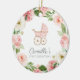Bebê Garota Rosa Flórida Primeiro Ornamento de Natal. Excelente como presente de Natal de Novos Pais ou Avós. Design do Partido Cava.