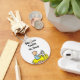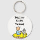 Um chaveiro com Jesus bebê sentado em um mangueiro alimentando suas ovelhas.
