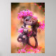 Macaco bebê bonito cercado por flores cor-de-rosa. Wombo Dream AI e colaboração de artistas.