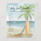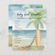 Bebê no Conselho! Chá de fraldas - perfeito para um chá de fraldas de verão. Tema da praia. A design de aquarela tem uma cena oceânica e de praia com surfboard, palmeira e chapéu de verão. Respostas: CRAVINGS, CRYING, PACIFIER, FRASCO, LUZ NOTURNA, LULLABY, STROLLER, EPIDURAL, BURP, ALTA CADEIRA, SACO DE FRALDA, SWADDLE
