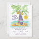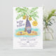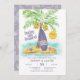 O convite para o chá de fraldas do tema Praia e surfe apresenta uma legenda "baby on conselho", uma ilha tropical com aquarelas, prancha de palma, um sol kawaii e estrelas-do-mar. A cor predominante é um roxo mudo, então é perfeita para bebês de menino e menina. Mostrado aqui como um convite para chás casais, mas você pode personalizar o nome para ser um casal ou apenas usar o primeiro e sobrenome da futura mãe. Arte por KL Stock