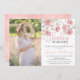 Bebê de aquarela com chá de fraldas floral cor-de-rosa floral, convite para fotos, cartão com fotos.