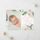 Bebê oh bebê rosa floral foto anúncio de nascimento. Apresentando um elegante cartão postal de anúncio de nascimento com foto em rosa floral. Belo texto floral em aquarela e letra elegante. Parte de uma coleção.