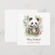 Cartão postal Bebê Panda Fofo Botânica Natalina Rústica. Aquarelas rústicas e estilo de arte linear em preto e branco urso panda fofo com xale verde e branco e bela botânica de inverno. Texto personalizado com uma fonte elegante e moderna.