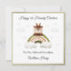 Este cartão de lembrança de Natal é para um precioso neto ou bebê no céu. A design inclui uma borda verde, nuvens brancas e difusas, um arco-íris de cor aquática e renas de estilo boho.