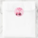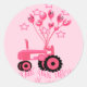Autocolantes ou selos de envelopes para anúncios de Crianças e convites para chás com designs de trator rosa giro com balões dizendo "É uma garota!" Os balões também têm designs de um alfinete de segurança fralda, garrafa de bebê e chocalho. Criado por KLeighE das Ilustrações de Harmonia do Hinterland por KLeighE