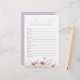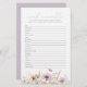 Tragam o bebê com este charmoso jogo de palavras florais que terá seus chás de fraldas convidados zunindo com entusiasmo! Este adorável jogo de palavras de flor selvagem em Bloom Wildflower é uma atividade divertida e vítrea garantida para deleitar seus convidados chás de fraldas. Os belos designs roxos e silvestres adicionam um doce toque ao seu decoro chá de fraldas feminino. Os convidados adorarão desembaraçar as palavras sobre o tema do bebê juntas e se unir ao entusiasmo da chegada do novo bebê. É uma maneira fácil de conseguir que os entes queridos se misturem e riam juntos do seu bebê em comemoração de temas sangrentos!