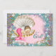 Chamadas de chá de bebê de sereia com adorável sereia bebê morena em uma bonito concha de chamas em um lindo azul roxo, rosa e lacrimogêneo sob o fundo do mar. Você pode personalizar facilmente esses belos convites para o chuveiro de bebês de sereia para seu evento simplesmente adicionando seus detalhes de evento no estilo de fonte e na redação de sua escolha. Este é um design impresso sem brilho real, joias, etc.