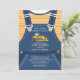 Convite para Chás de fraldas de construção com o par mais bonito de macacões para bebês com um caminhão de construção amarelo. Convidado de chá de fraldas de Meninos Únicos para chá de fraldas de Meninos.