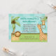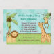 Este convite adorável do chá de fraldas da selva é oh tão bonito com um leão e um girafa do bebê que mantêm pacientemente o relógio e um macaco do bebê apenas que pendura em torno de pronto para dar boas-vindas ao seu pequeno novo no mundo! Fácil personalizar mudando para fora o texto para seu partido do divertimento!