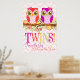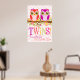 Gêmeos corujas adoráveis, um rosa e um roxo com o texto "Duas vezes a Alegria e Duas Vezes o Amor" podem ser personalizados com sua própria mensagem... fazem um presente maravilhoso para novos pais de gêmeos e um excelente para o quarto ou quarto de uma criança! {{Clique em PERSONALIZAR para alterar as cores do texto, fontes ou cor de fundo}}