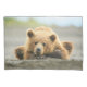 Esta fofinha Getty Images apresenta um jovem filhote de urso pardo costeiro deitado numa praia esperando que a mãe pegue peixe no Alasca.